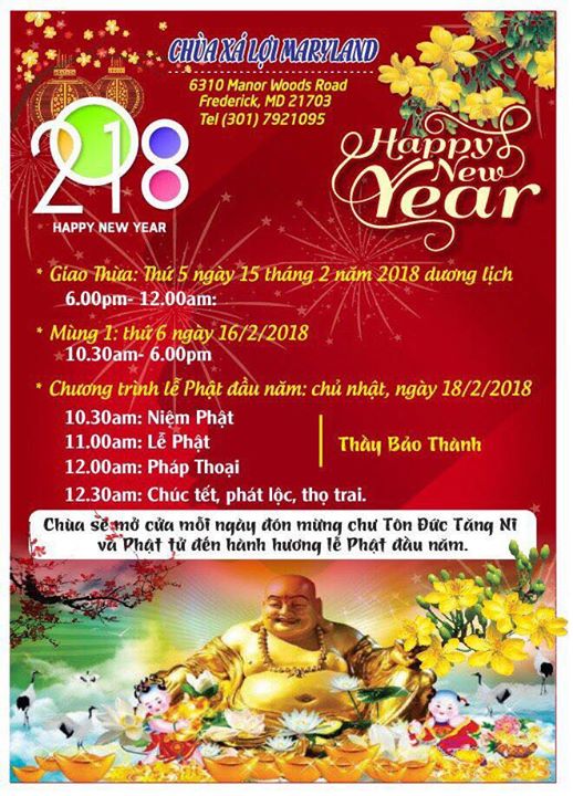 Chương Trình Lễ Phật Đêm Giao Thừa và Tết Nguyên Đán năm Mậu Tuất 2018 của Chùa Xá Lợi