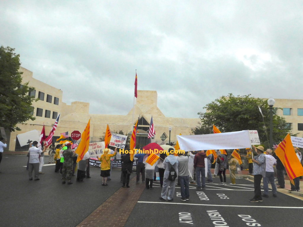 Hình ảnh cuộc biểu tình chống Tàu Cộng ngày thứ Sáu 23/8 trước cổng Tổng lãnh sự quán Tàu cộng tại Thủ đô Hoa Thịnh Đốn về vụ Bãi Tư Chính