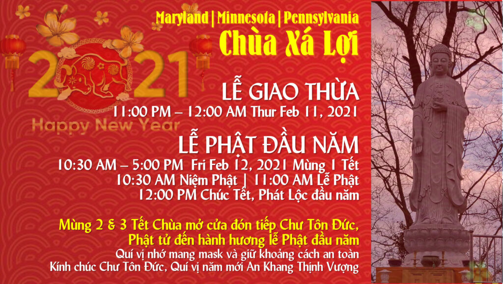 Chương Trình Đêm Giao Thừa và Tết Tân Sửu 2021 tại Chùa Xá Lợi